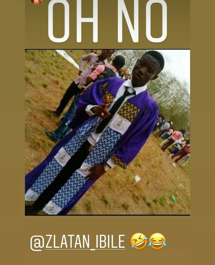 Nigerian singer Zlatan Ibile's friend also shared the singer's throwback pictures during his graduation. Sharing the picture to his story, the friend tagged Zlatan in the picture while captioning it "Oh No" along with laughing emojis.