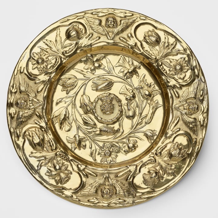 Formed as part of the plate commissioned by Charles II on his restoration in 1660 to restock the depleted Jewel House, this silver-gilt altar dish is actually part of a pair.