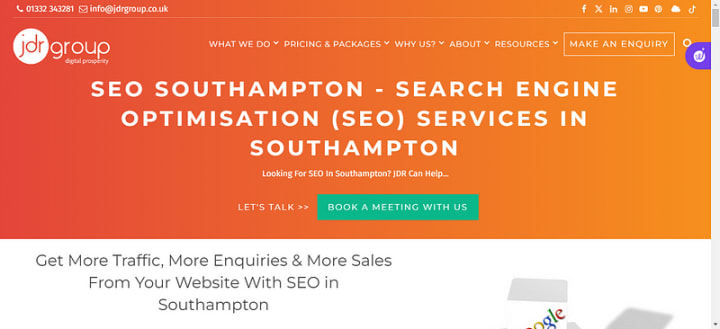 Founded in 2004, JDR Group is a reputable SEO, PPC, and web design firm in Southampton, specializing in digital marketing. They excel in monitoring rankings, link building, and social media marketing. With a focus on measurable results, the agency conducts exhaustive keyword research and competitor analysis, ensuring clients receive tailored strategies for sustained online success.