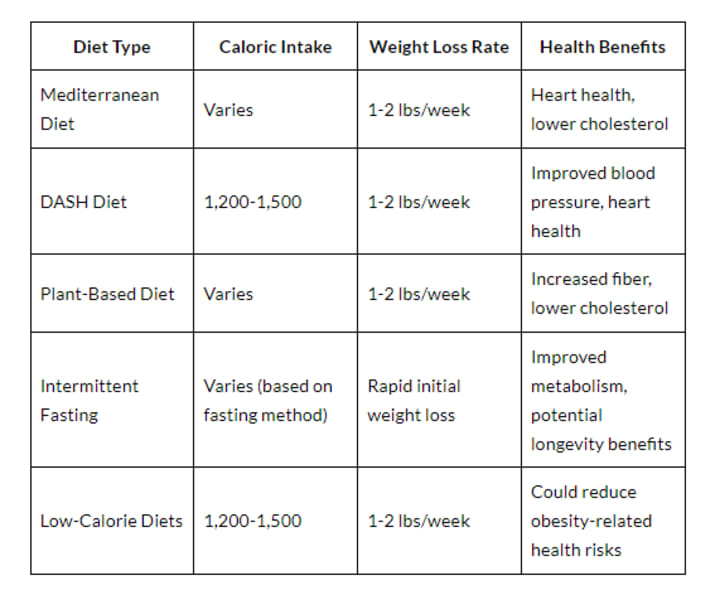 The best diets for weight loss for females include the Mediterranean, DASH, plant-based, intermittent fasting, and low-calorie diets. Each diet has its own advantages: