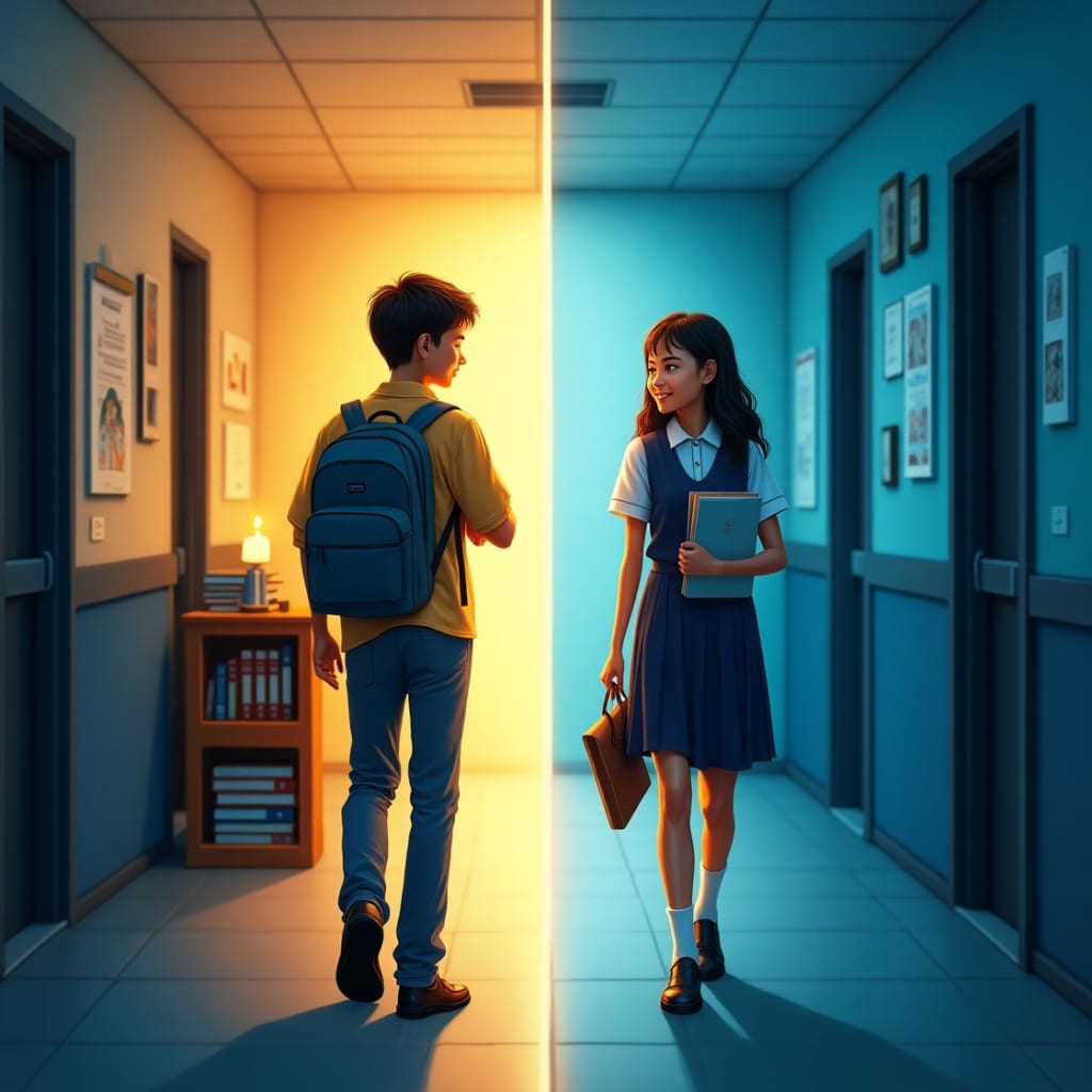The next day, Zayan saw Aleena in the school hallway.