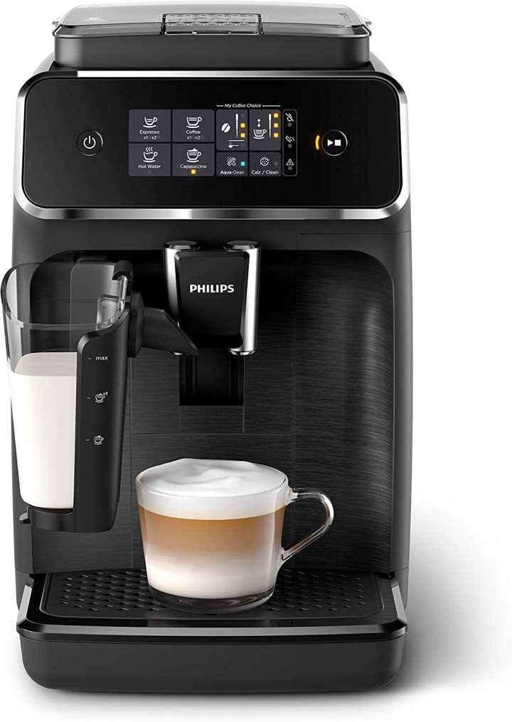 5. Philips 2200 Series Fully Automatic Espresso Machine w/LatteGo, Black, EP2230/14: This fully automatic machine is perfect for those who want to enjoy café-quality coffee at home without the hassle of manual preparation. It features a LatteGo milk frother, which produces a rich and creamy froth for lattes and cappuccinos, and the ability to customize the strength and temperature of your coffee. It also has a built-in grinder and a user-friendly interface. The main strength of this machine is its milk frother and the ability to make a variety of specialties coffee drinks.