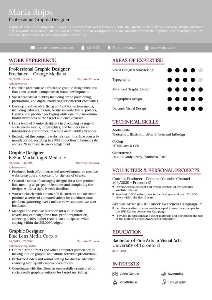 • Design matters: While content is key, the visual appeal of your resume also plays an important role. Use clear headings, consistent font styles, and an overall clean layout. Avoid clutter, and ensure the resume is easy to read and navigate. Use white space strategically to break up sections and make your resume scannable.