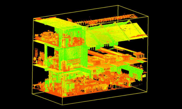 Point cloud modeling is making accurate digital copies of real-life buildings or structures with laser scanning technology. Laser scanners send out beams of light that hit surfaces and measure how long it takes for the light to come back.