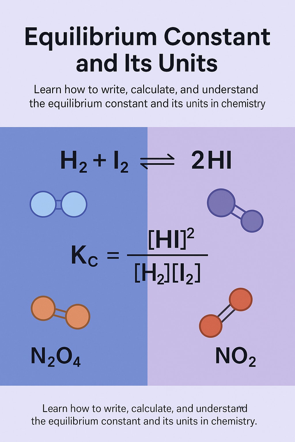Learn how to write, calculate, and understand the equilibrium constant and its units in chemistry.
