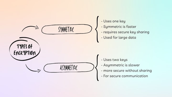 Encryption can be classified broadly under two types: symmetric and asymmetric encryption.