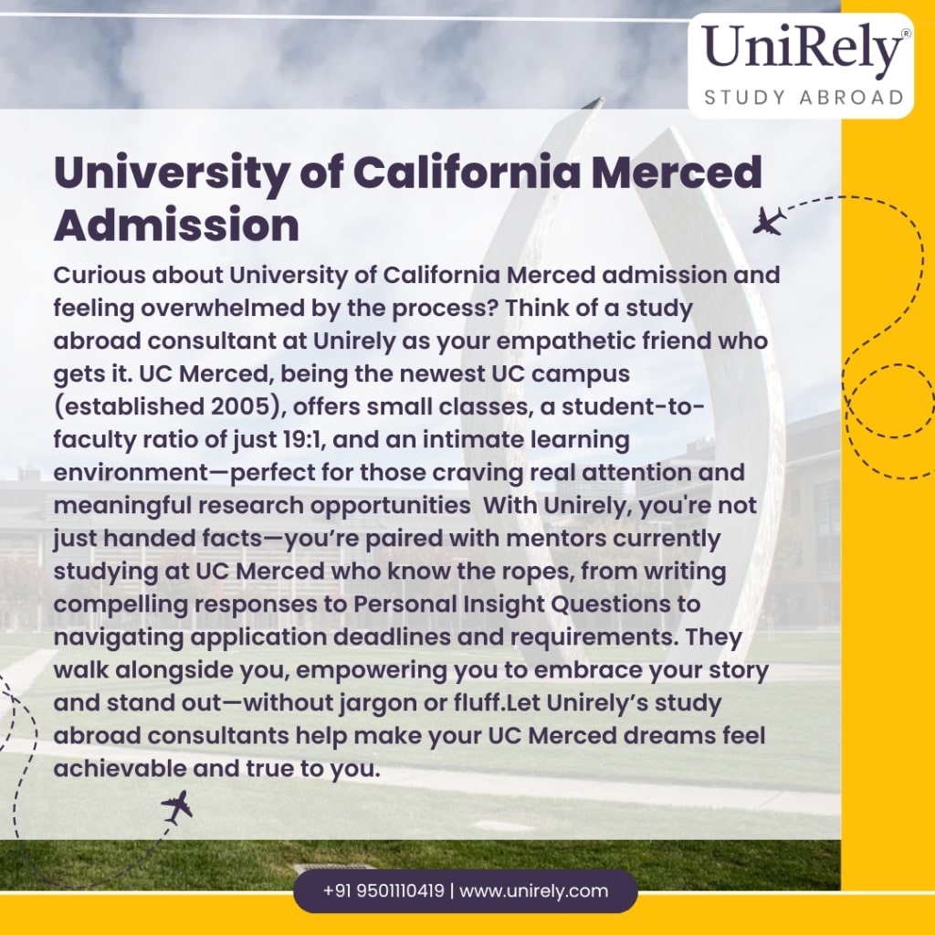 Navigating UC Merced admissions on your own can be challenging — especially when juggling multiple deadlines, documents, and financial planning. This is where a trusted study abroad consultant like Unirely becomes invaluable.