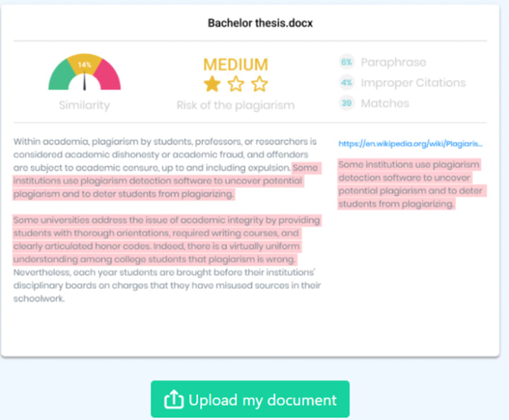 It scans your papers, articles, thesis, journals, or any piece of writing in a matter of no time and gives results in a percentage of original and plagiarized content.