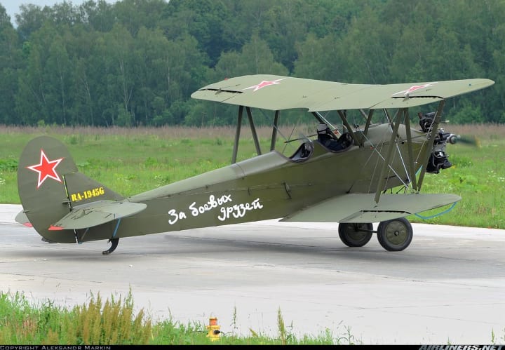 The middle-tier pilots were assigned to the bomber regiment, while the lowest-scoring pilots were assigned to night bombers and given the Polikarpov Po-2, a 1928 trainer made of wood and canvas with no heat, an open cockpit, and a 100-horsepower engine. The plane was armed with three bombs under each wing (as seen below).