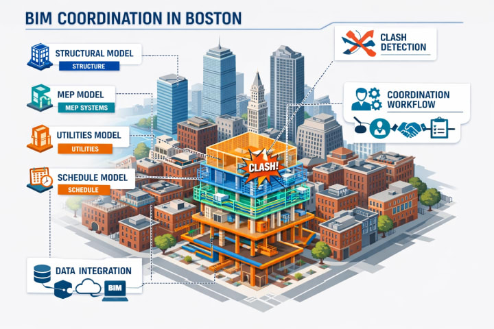 Boston’s construction landscape is unlike most U.S. cities. With its dense urban fabric, historic buildings, narrow streets, underground utilities, and strict regulatory environment, even small construction errors can cause major delays and cost overruns. In such a complex environment, BIM coordination is no longer optional—it is essential.