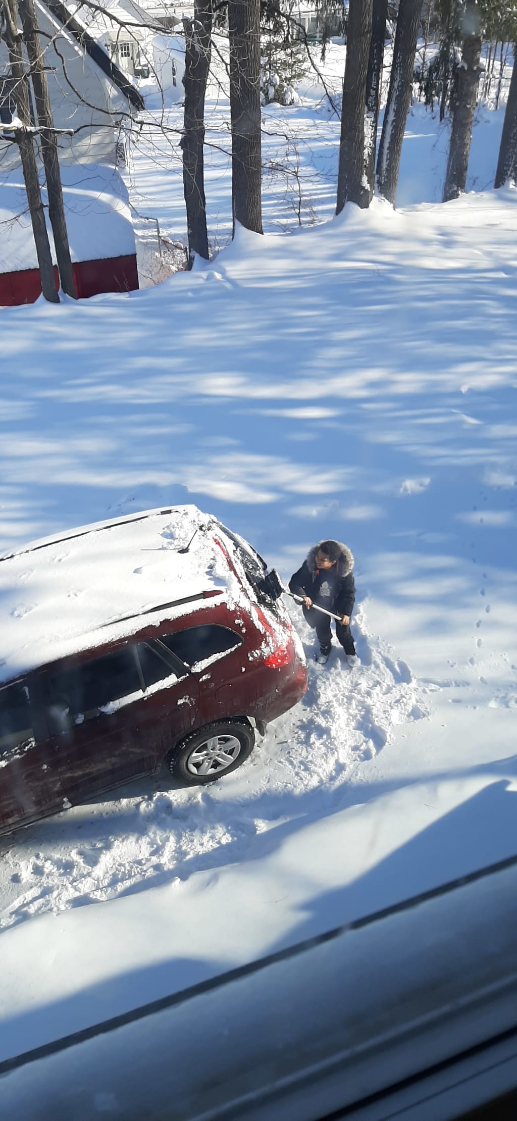 The next morning we got a bunch of snow and what does my little boy decide to do, he goes out and starts brushing my car off. I figured maybe by the next morning the whole not having his brace thing would of been getting him down, but nope. He was up and at it like any other day. Later when he came home from school I was again, expecting him to be upset about his brace not being ready for so long, but the 1st thing he said to me when he got in the car was.