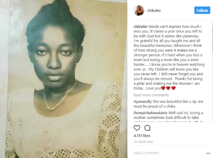 When Chika Ike posted a younger picture of her mother on social media, so many fans thought it was a picture of her younger self.