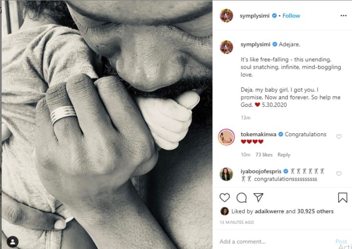 On May 30th, her and husband Adekunle Gold welcomed their baby girl, Adejare into the world.