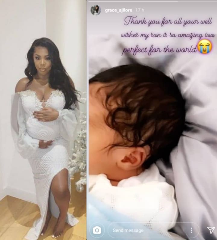 Social Media celebrity and Vlogger, Grace Ajilore welcomed her first child, a boy earlier this year too.