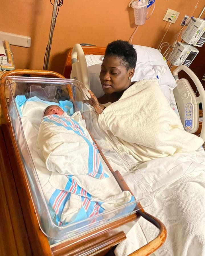 The Nollywood actress gave birth to their baby at the University of Maryland St. Joseph Medical Center in Maryland, USA on May 4th. Her husband shared the good news online saying: