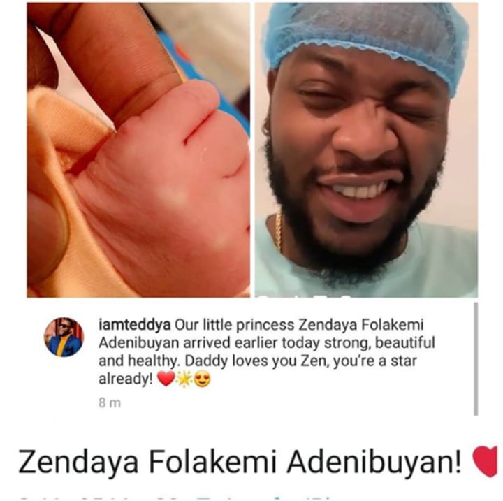 Their baby girl, Zendaya Folakemi Adenibuyan was born on Thursday, March 5, 2020.
