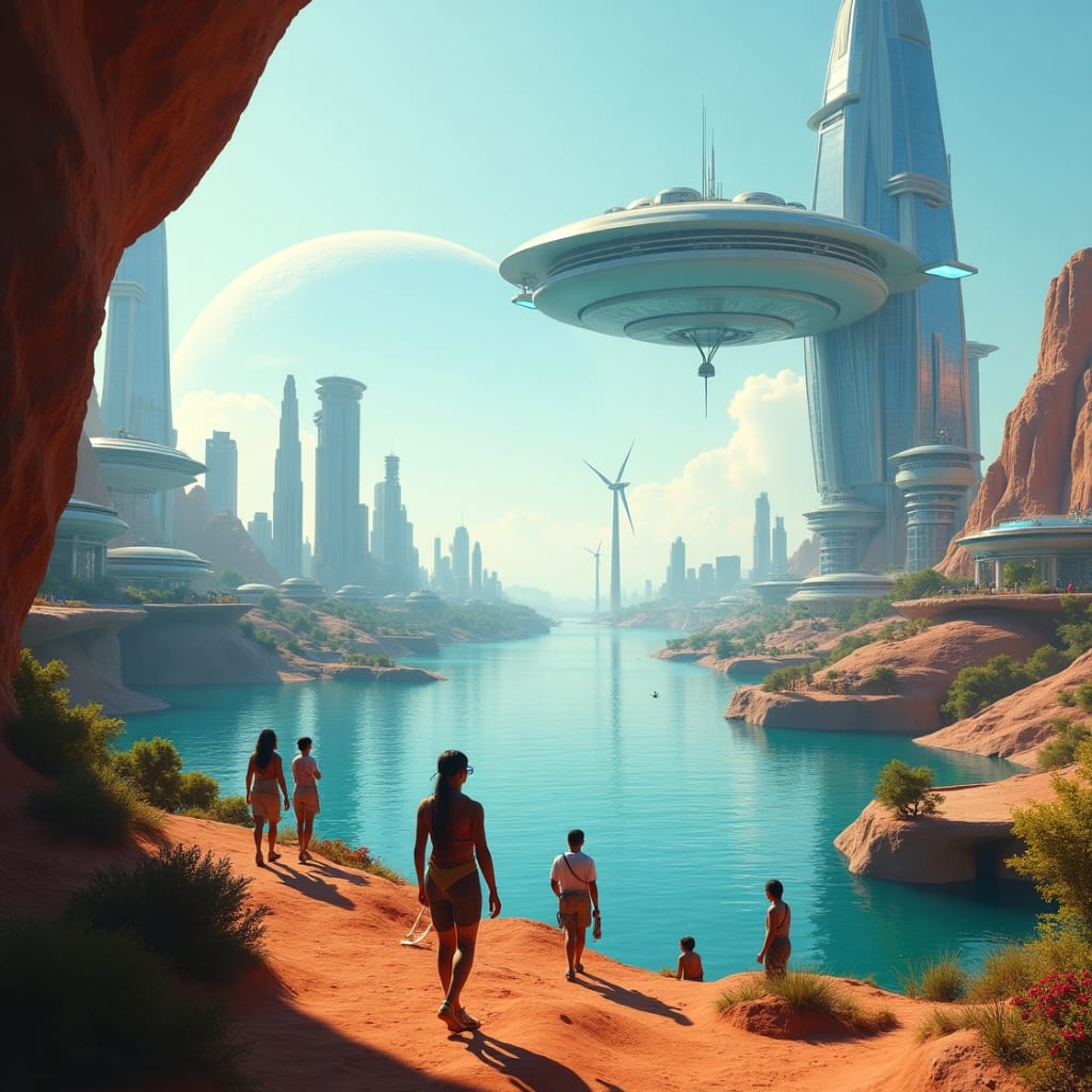 Mars is no longer science fiction. Permanent settlements dot its surface, supported by AI-managed biospheres and solar power arrays. The Moon hosts a major scientific outpost and an interplanetary shipping hub. A space elevator, completed in 2103, revolutionized off-world transport, drastically reducing the cost of space travel.