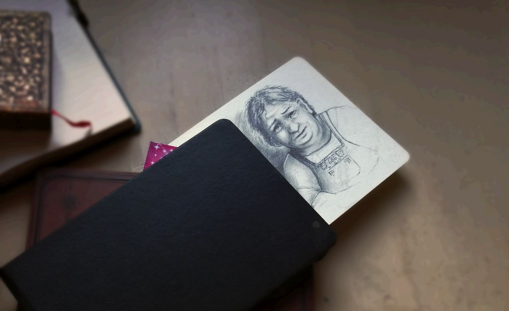 This little black book, containing one hundred and ninety two pages filled with drawings, notes, short stories, and a lottery ticket, would have been his last gift from Grandma Alice. Ever since his ninth birthday, this had been her yearly birthday present to him. She had never had much by the way of money. Some years she was able to put a little extra to the side and had treated him and his cousins to a birthday meal, but the book, its contents and the lottery ticket were the only things she could reliably give. None of them had ever won anything of course and the lottery ticket, which was always pinned to the last page, became a longstanding joke among his cousins. Over the years his other cousins became less enamoured with the heartfelt gift, and soon he was the only grandchild who received one on his birthday.