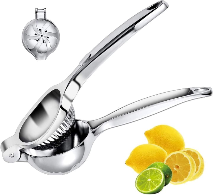 The "Manual lemon press" is a versatile and durable kitchen gadget designed to extract maximum juice from lemons and other citrus fruits. It offers several features that enhance its performance and usability.
