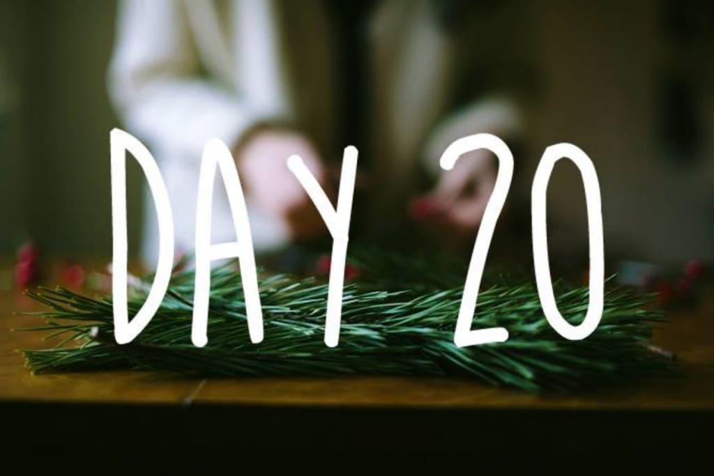 Hello all! Welcome to day twenty and day twenty-one! Yesterday was a little chaotic and I missed my writing time so here I am! I'm sorry if you actually missed me yesterday. But you get two of me today!!! Isn't that exciting? I hope so anyway. If it's annoying then thanks for still reading. Here's the quote of the day: "It is perfectly okay to write garbage - as long as you edit brilliantly."—C.J. Chennyh