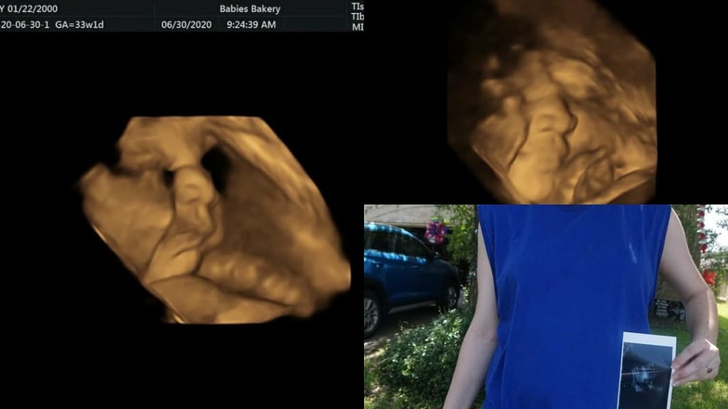So not only did we have a late start to finding out about her but it took until 28 days before she was born that she was a she. At my first appointment she tried to see the gender but she said the baby was in a bad position. 4 days later I had an ultra sound to make sure she was ok… and was supposed to find out the gender, but the technician said the baby was in a bad position. I made an appointment at a 4d ultrasound place to try and get it there. My mom offered to pay for it and of course I couldn’t refuse. And the best part was I got to have people with me. My partner got to come and see his baby in real time in person other than on a duo call, and I got to have some of my family there. Well come to find out because I’m so far along and she was so packed in my belly that they couldn’t see her very well. Good enough to see her limbs but not the important bit. And I had a lot of frontal lining, which kept her safe but made it hard for the machines to see her. So after 30 minutes of me moving and trying to get her to move too the technician looked at us with a huge smile, even under her mask I could tell she was smiling. She said, “We finally found it.” My mom and aunt wanted it to be a surprise to us so we didn’t get to know right away. She asked “If you had to guess what it was, what would you guess?” My partner, “Well it looks like my nana but I’m still hopeful for a boy.” Me, “I can’t really tell with young babies.”