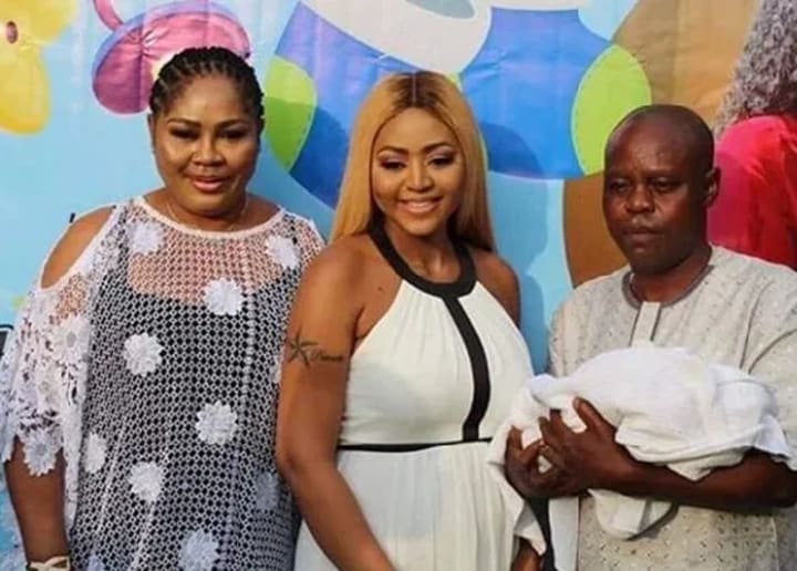 Veteran Nollywood actress Liz Benson is another tour de force on screen who is fortunate enough to now be a grandmother. Liz Benson has three children and in 2017, her daughter Lilian tied the knot with her husband Promise Diribe. Late in 2019, the two welcomed their first baby together making Liz Benson a proud grand mom.