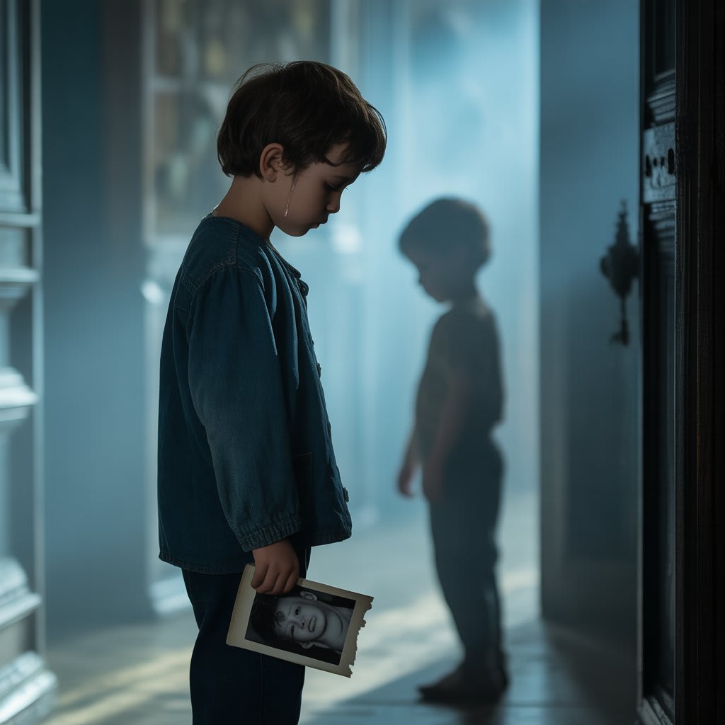 That night, when he got home, he placed the photo — now digitally restored with a soft, mirrored image of himself beside the original — beside his bed. Two boys, standing side by side, one real, one imagined. And yet... both deeply felt.