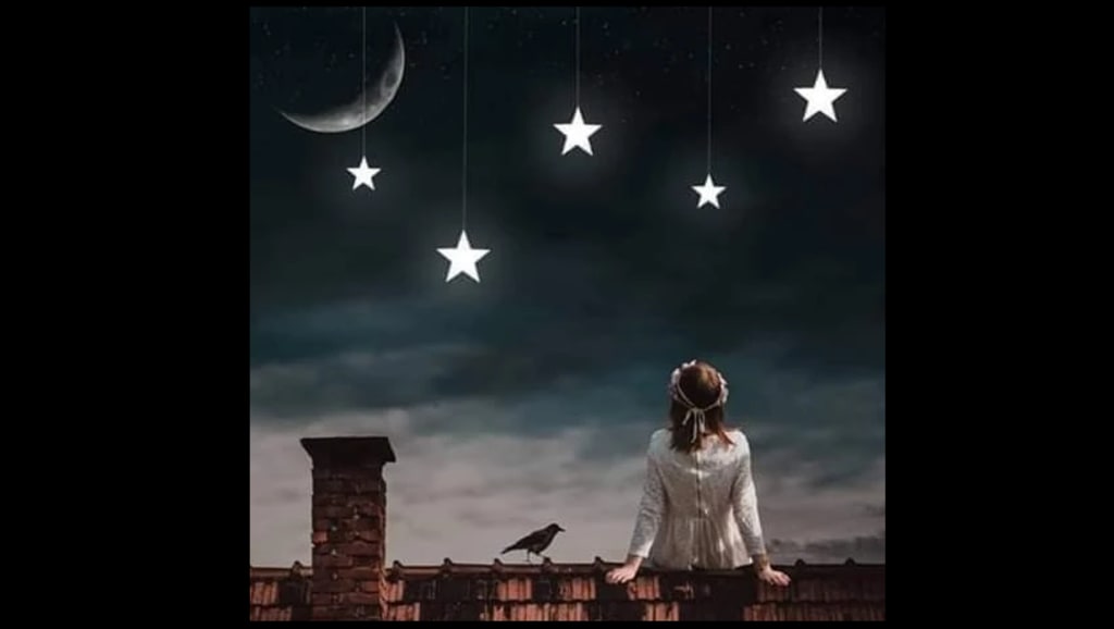 She regains her balance after pulling herself onto the roof. Although, she has scraped herself many-a-time on the rough shingle tiles getting to her favorite place, she is now an expert at achieving this feat and now does it scrap-free. This sanctuary of solitude provides a place where she can let out all her frustrations, dream that she is a princess held hostage in a tower about to be rescued by her knight in shining armor, or just be left alone to gaze at the vast universe above. The summer months make it comfortable to sit out under the stars and imagine how different things could be. As she settles in, she waits for the next shooting star to appear so she can make her wish. Most times she is left disappointed, but tonight, she sees it, the unmistakable streak of light shooting across the sky. “There it is! There it is!” She exclaims out loud, almost losing her balance jumping up and down in excitement. “I knew I would see you again!” Careful not to take her eyes off of the shooting star, she says, “Daddy, I miss you. Oh, Daddy I miss you so much! Come back to me, please?"