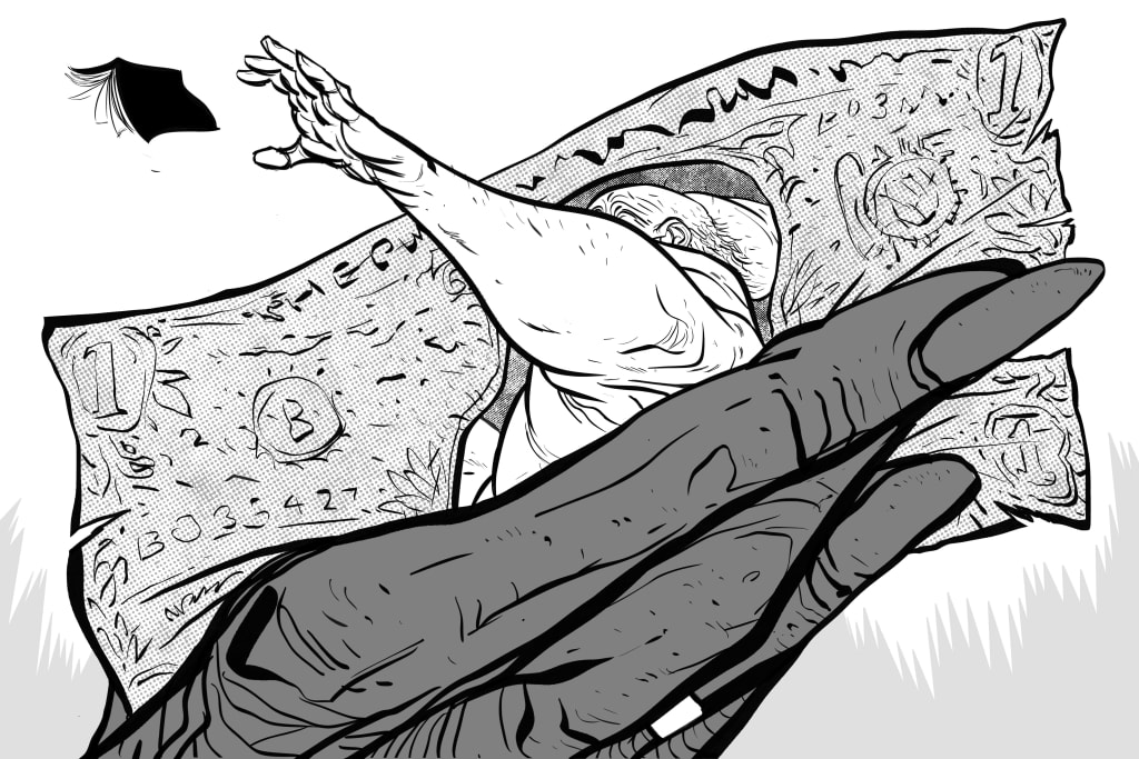 “As heartbroken as I was, my final act involves all the money I had left in the world. But now, it is yours, dear Thomas. How could I not show you the real meaning of generosity unless I demonstrated it to you? The precipitous balance must not be lost on you. $20,000! 20,000 days. Enjoy, if you can. Oh, well! Oh, my! Owe well! Owe my! Owe nothing! Owe everything! Prudently, Beatrice.