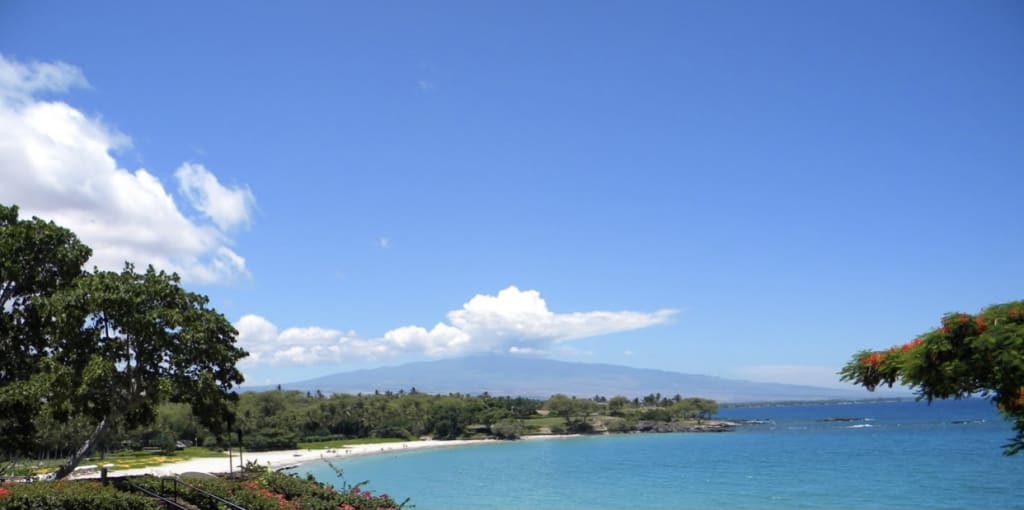 On the white wall in front of her was an old painting, she remembered, it was a gift from her Tūtū, a painting of their home, of Kauna‘oa Bay in the 1920s.