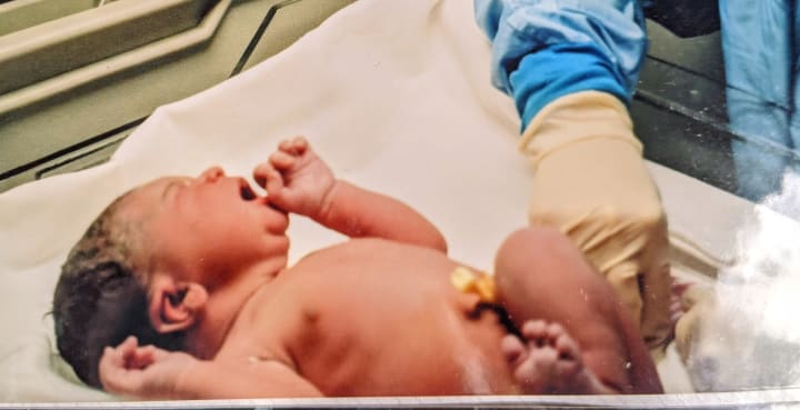 Seconds after they took you to do your Apgar Score, there was something wrong. It was determined your blood sugar level was low...not sure how that happened because I ate a lot! Even on the way to the hospital we stopped for a burger.