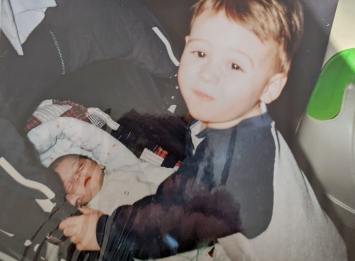 Your brother fell in love with you right away. Giving you kisses and wanting to give you his soother too.