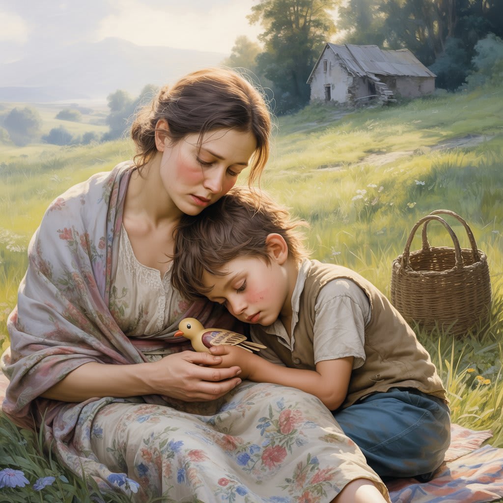 As Elena lowered her hands, a soft voice called out from the nearby path. An older man stood there, with kind eyes and a worn leather bag. He was a schoolteacher, visiting relatives in the countryside. He had been walking the meadow trail when he saw the mother and child.