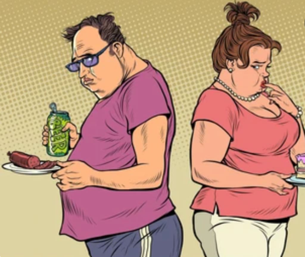Once upon a time, there was a married couple named Karen and David. Both of them were plus-size individuals and they had been happily married for many years. They were deeply in love with each other and were content with their lives together. However, society's constant pressure to be thin and fit had begun to take a toll on their self-esteem and happiness.