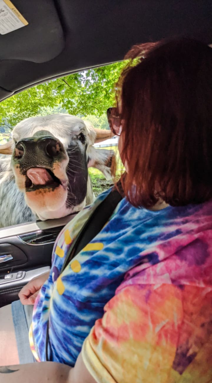 I am now the proud owner of an amazing video clip of my best friend being sneezed on by a large steer with his head in the window. I’m unsure as to who was more surprised, my friend who jumped and let out a little scream, or the poor steer she scared to death.