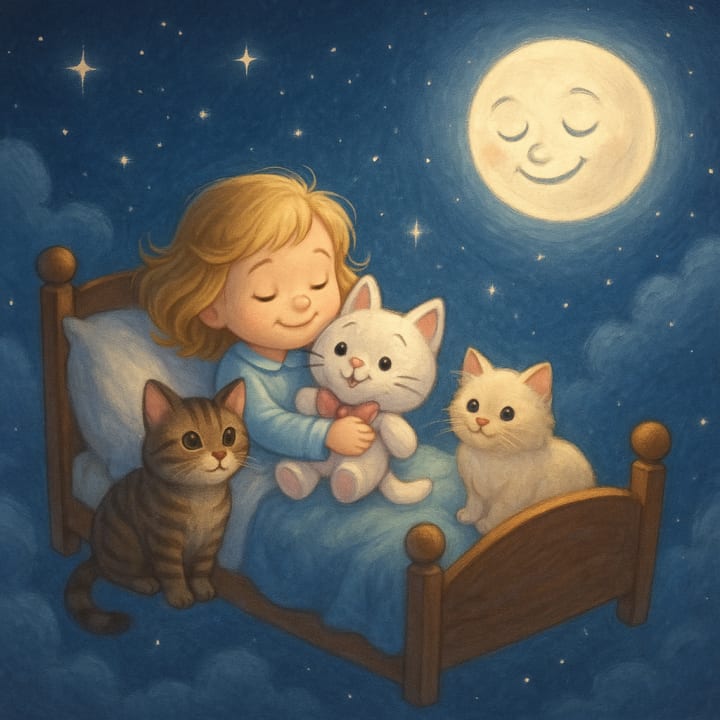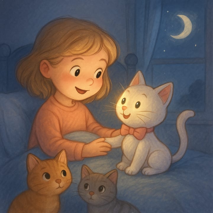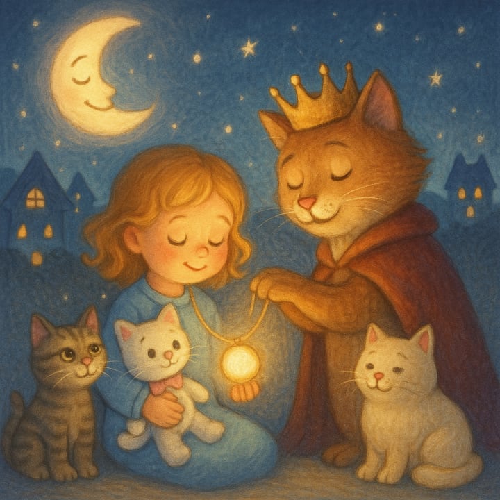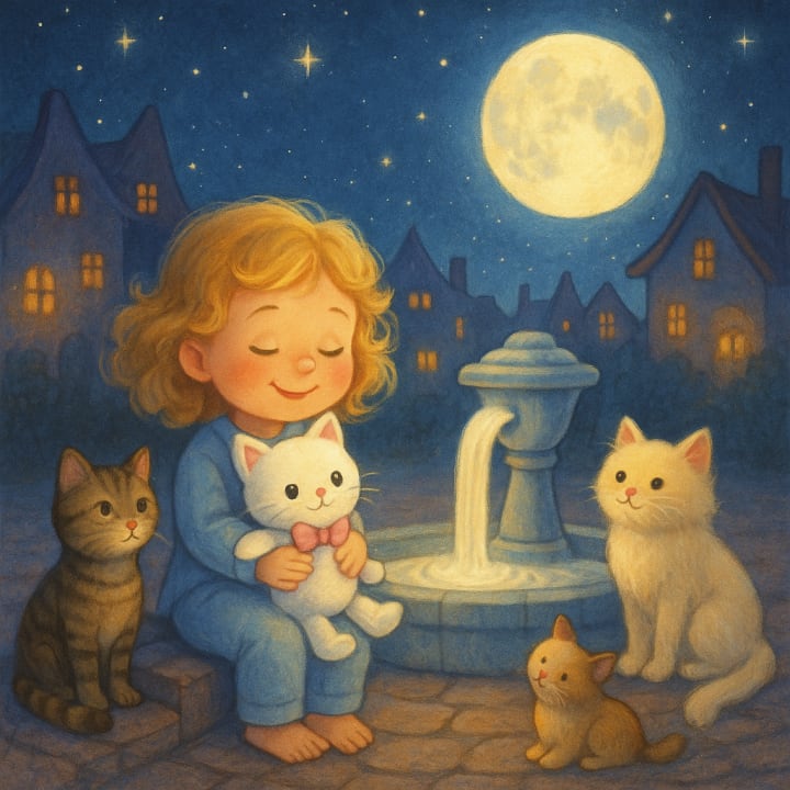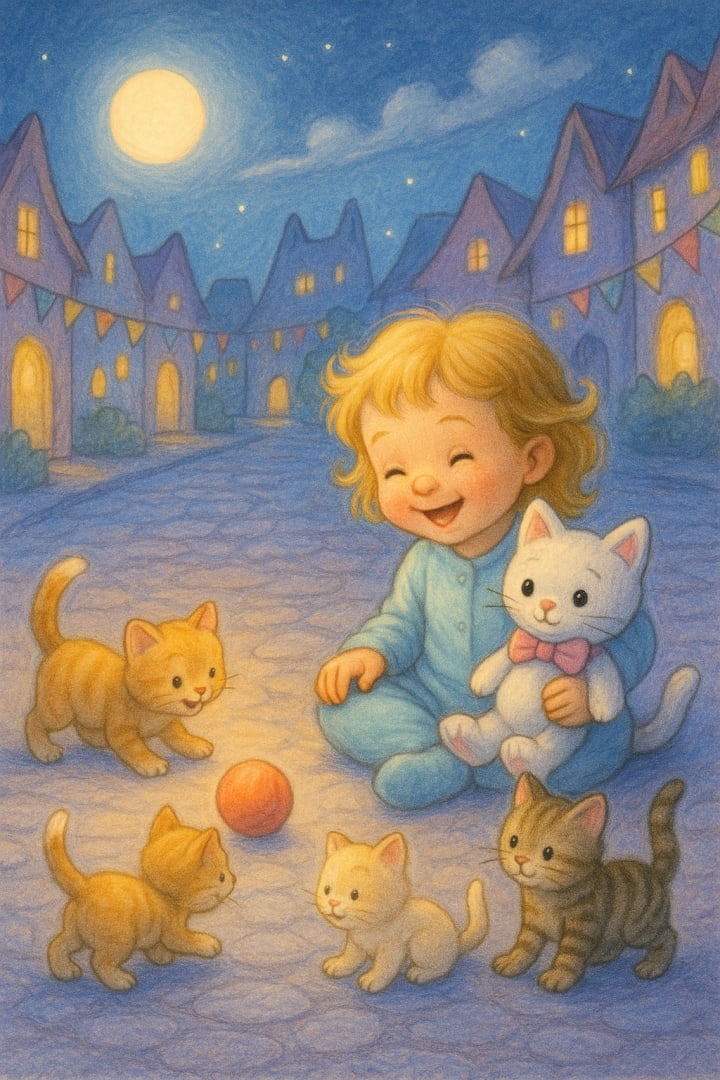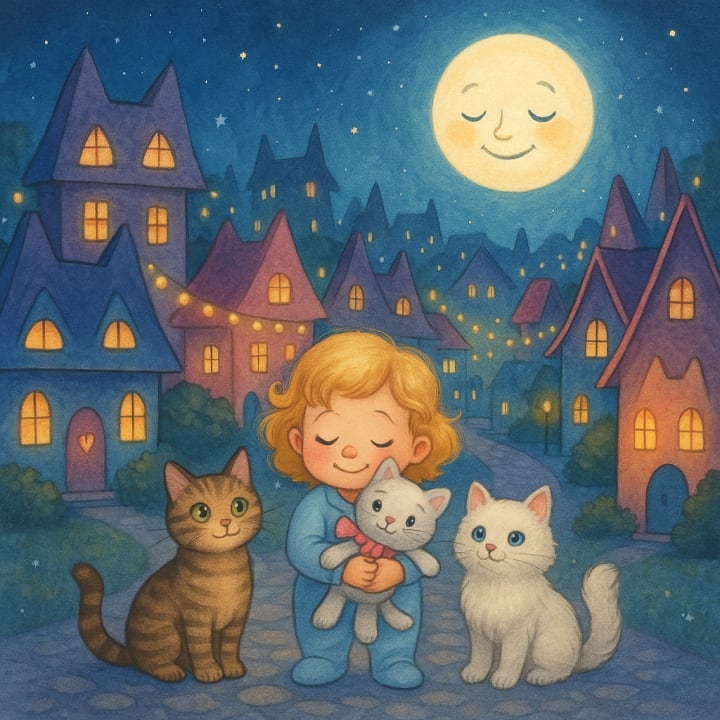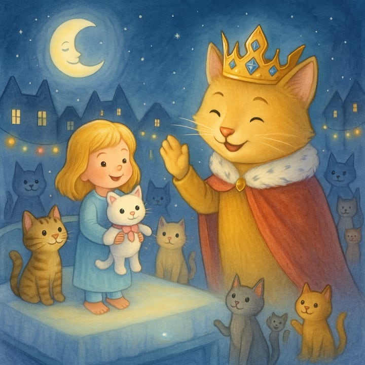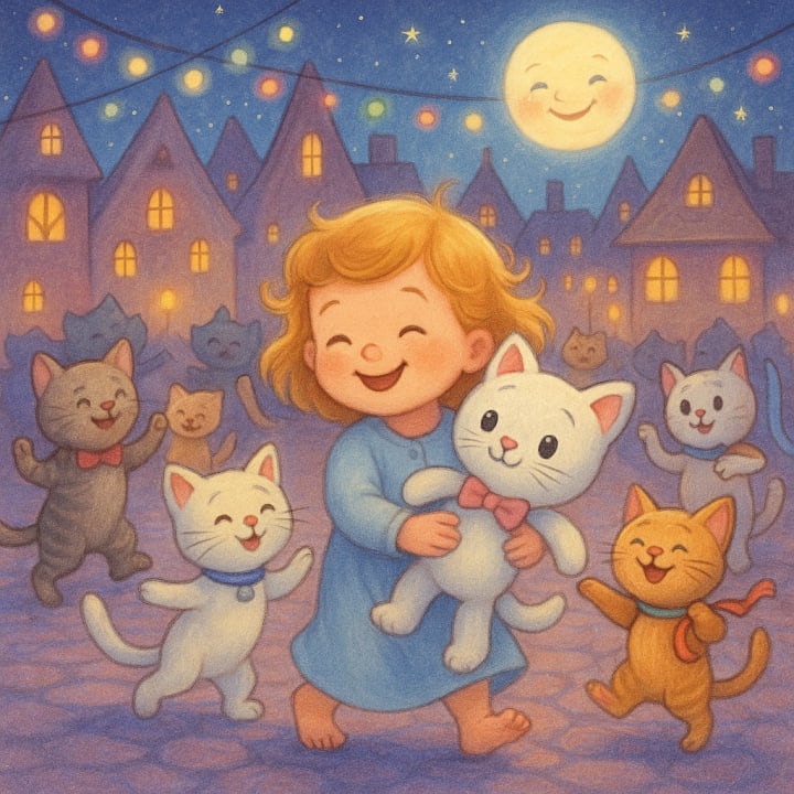 When little Adriana and her soft toy Pishi wake up one moonlit night, they discover a glowing path leading to Cat City — a magical world filled with lanterns, laughter, and curious cats who talk and sing. Together, they learn that kindness and courage make even the smallest heart shine brightest.