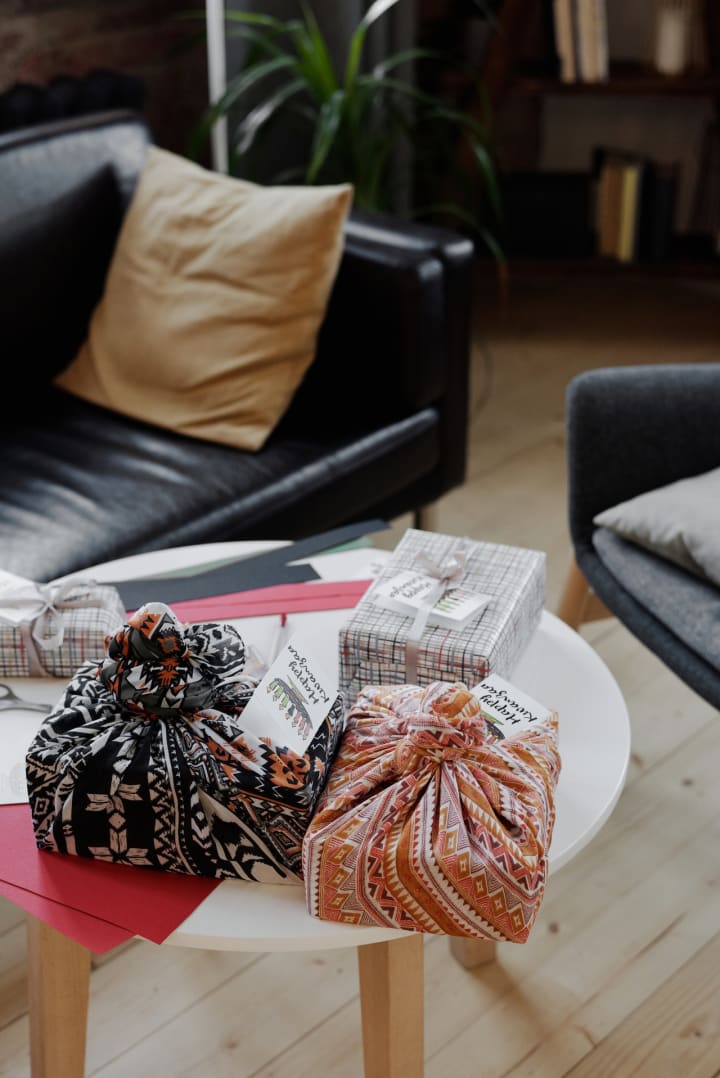 2- Be creative and use things like furoshiki to wrap. This technic involves taking a cloth to wrap your gift, but we’ve seen people use a T-shirt, towels, and so on, which they also gifted or kept as wrapping “paper” for their gifts.