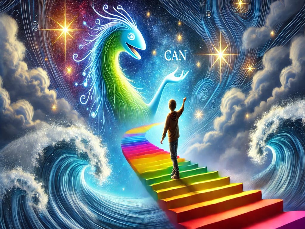One morning, 8-year-old Can woke up feeling an unusual mix of excitement and curiosity. His heart raced as he recalled the incredible dream he had during the night. In the dream, he had climbed a gigantic, vibrant rainbow staircase that seemed to stretch endlessly into the sky. When he finally reached the top, he found himself standing before an immense, glowing ocean. The ocean wasn’t made of water but of shimmering, fallen stars, their light reflecting and dancing like waves.