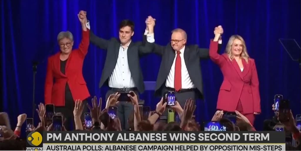 Labor Party retains power as Australians vote for stability, making Albanese the first PM in two decades to win back-to-back terms.