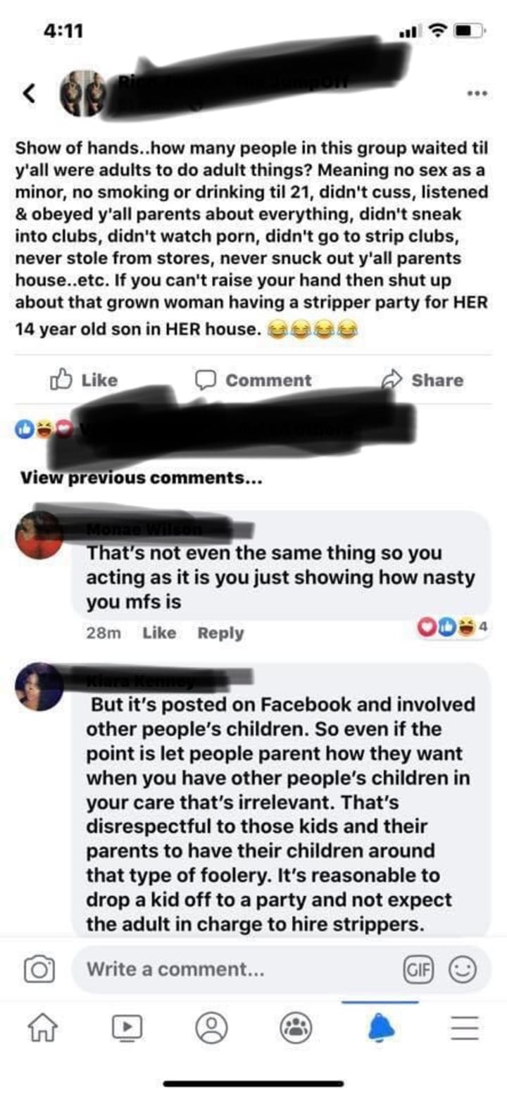I couldn’t believe it! Some of these boys/men are really validating this behavior for their children. I’m not downing them on their choices because I can only raise my household. But wow!! Really?