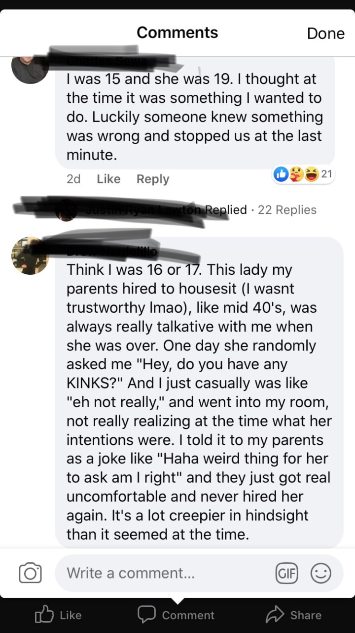 I’m also mad at the females that did the act. Why are you shaking your ass in front of these little boys. Where was your integrity to at least say no that I can’t do this? Or what about the “grown” woman? I get that how you want to live is how you want to live. But what in your right mind makes you attracted to little boys? Little boys!