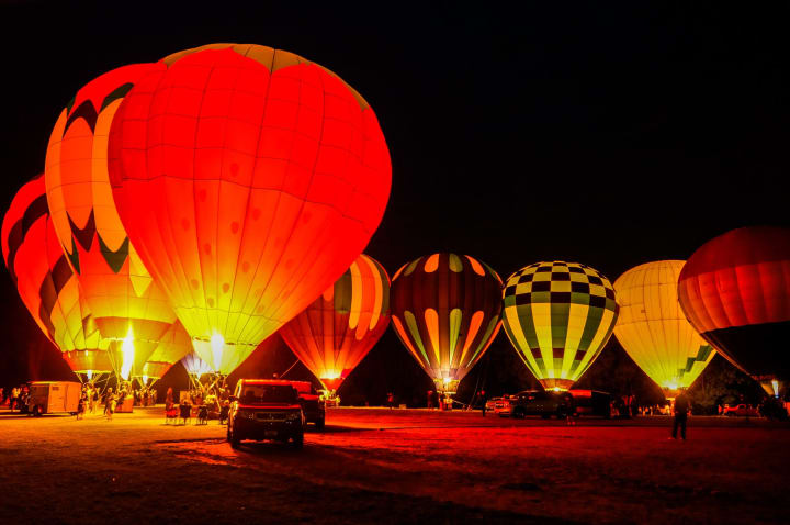 The choreographed music begins and the pilots are ready with their walkie-talkies in hand. “All balloons with red, glow! All balloons with rainbow colors, glow!” The music of “Up, Up and Away” by The 5th Fifth Dimension is a crowd favorite. “Twinkle!” comes across the radio waves and all the pilots flicker the burners to create a magical effect on the field. The countdown starts when the DJ calls out on the loud speaker. “Get your cameras ready. All Glow in 3, 2, 1!” The pilots burn and all of the balloons are lit up at once for these fantastic photo opportunities.