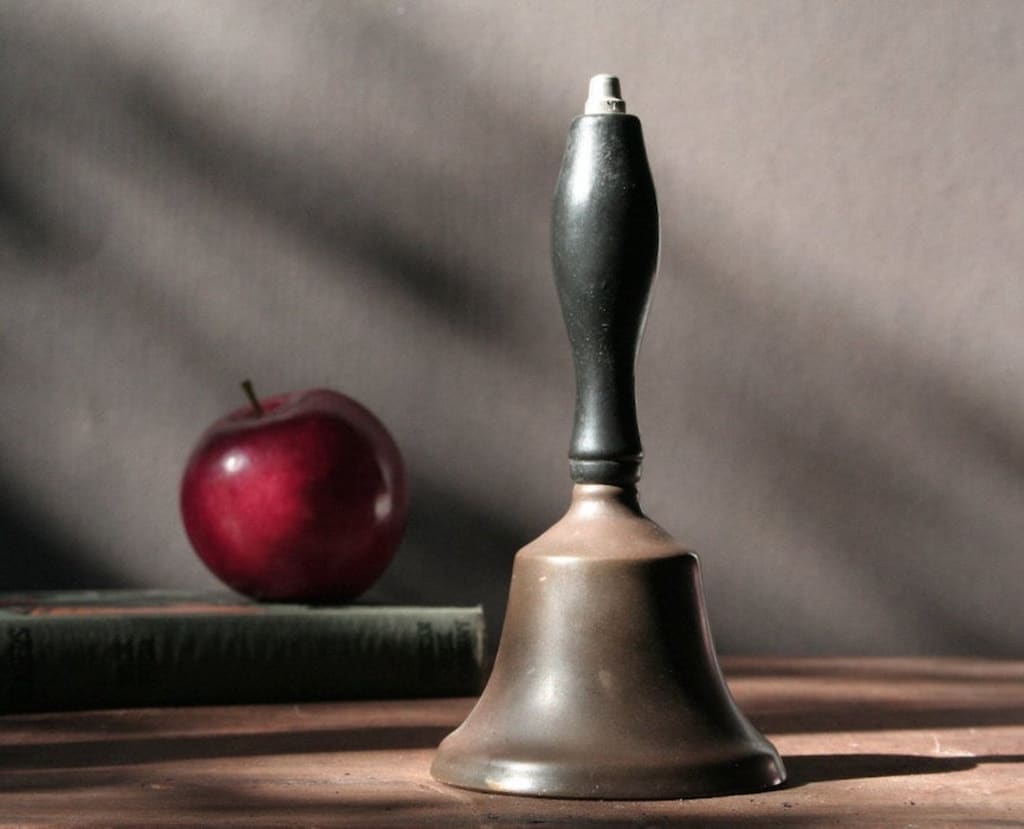 The whole ring the bell thing only came about because we would tell our mom where we were going, then never be there when she telephoned or sent word to come home. She knew we weren’t ever going to stop what we were doing to trudge all the way home to tell her we were changing locations, so she came up with the ring the bell strategy. She assured us she would only ring it if it were very important, and when we heard it, we had better run home and not take our sweet time. It was pretty much a “bell or belt” situation. Well it wasn’t long after our twentieth argument over the strategy that my mom found a solution. Antique shopping one day while we were at school, she came across an authentic one-room-schoolhouse teacher’s bell. It had a large contoured wooden candle, a large bell and clacker, and was built to be heard ringing across town and prairie. Problem solved. You could literally hear this bell underwater in a pool half a mile away. Now it really was “bell or belt.”
