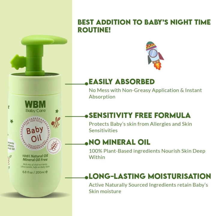 - Soothing: Massaging a baby with baby oil can be a calming and soothing experience for both the baby and the parent, and can also help to promote relaxation and sleep.
