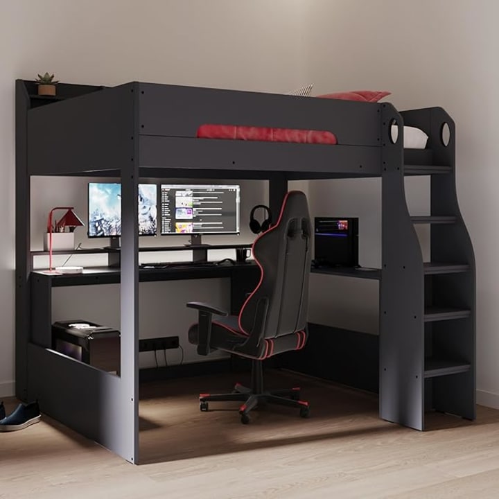 Brands like Flair Furnishings and Seconique have introduced innovative bunk bed designs that blend style with smart storage and workspace solutions. For instance, the Flair Furnishings Wooden High Sleeper Bed for kids doubles as a gaming station, equipped with a desk and LED lighting, making it perfect for those seeking a multifunctional yet sleek, space-saving setup in black. Another great choice is the Seconique Jupiter 3' Single High Sleeper Bed in a modern white and grey finish, offering a streamlined design that’s ideal for smaller rooms while maintaining a stylish appearance. For those in need of a larger option, the STRICTLY BEDS&BUNKS Celeste High Sleeper Loft Bunk Bed is a 4ft 6 double bunk that provides the extra space without compromising on durability or structure.