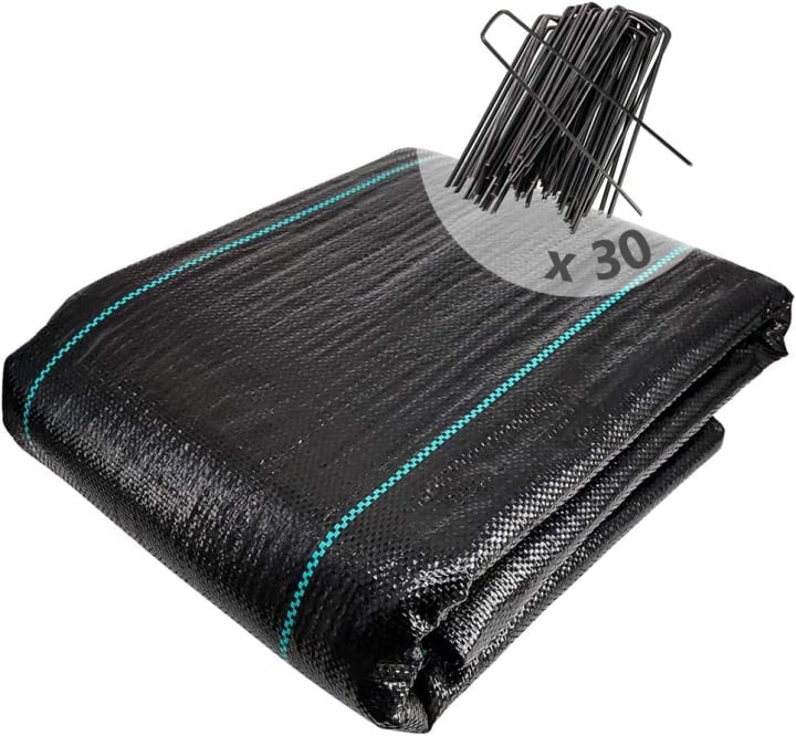 Mulching fabric with 30 pegs is an essential accessory for gardening and landscaping enthusiasts. This polypropylene tarpaulin is designed to efficiently prevent the growth of weeds while simultaneously improving the growth of plants by increasing the nutrients of the soil. The material is permeable to water and air, making it a practical and durable solution for maintaining a beautiful and healthy garden. The tarpaulin is resistant to tearing and trampling, and can adapt to soils of different pH, ensuring a longer lifespan. The package includes 30 rustproof fixing pegs, which make it easy to use and install. Additionally, this mulching cloth is environmentally friendly, as it prevents the use of weed killers and other chemicals. With dimensions of 10 x 2 m and a UV protective coating of 100 g/m², this mulching fabric with 30 pegs is a must-have accessory for any gardener looking to maintain a healthy and beautiful garden.
