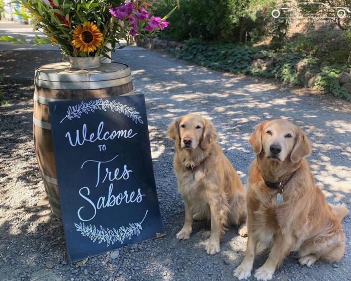When you arrive at this women-led winery, you and your pup will be greeted by a fluffy, four-legged welcoming committee of three friendly Golden Retrievers.