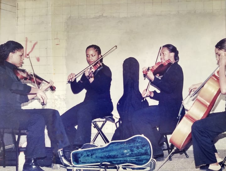 As much as I hated moving to New York City and leaving my home in Arizona, it was the first time I appreciated the city and it's people. I had nothing but music to give and their generosity gave my family a way forward in our time of great need. In later weeks, I would go out often until my cousins who had also been learning the violin, viola and cello joined me and we formed a classical quartet. My mom and aunt did eventually find jobs and we were able to start music lessons again. It wasn't long after, that my mom's new husband exited our lives of his own volition and the marriage was annulled. My mom has long since remarried to a wonderful man and step father. . . .and yes (if you were wondering) they were "matched".