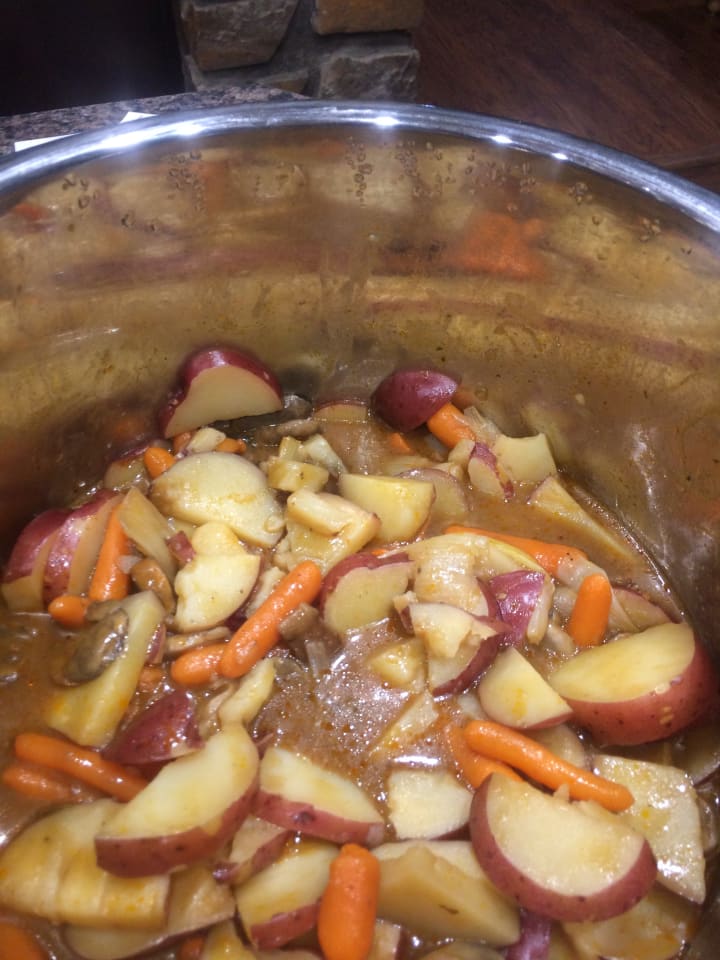 The pictures represent the amount of food I cooked tonight for the three family members in my home. Keep in mind that is not including my oldest son and my grandson or daughter-in law. Five pounds of Chuck Roast, five pounds of potatoes, a bag of baby carrots, and mushrooms. Remember that. Three. Myself, my husband, and the empty vessel. Oops, I mean my 15-year-old son. Now before you judge, my 15-year-old just turned 15 a few months ago, but he is 6’3” and weighs about 250. That dinner was completely gone in no time. Where did it go??? He has to be an empty vessel. That’s the only way to explain that amount of food being eaten in one setting. I can assure you this is an everynight occurrence. I never cook less than two pounds of ground beef, a family size bag of chicken, or multiple frozen pizzas (Did I mention he’s an athlete and we are not always home, frozen pizza to the rescue!). I am totally trained to cook in Banquet mode. I feel I thaw half a beef at a time. I read a recipe and my mind is on automatic double that recipe. Hey, I should do a cookbook for teen boy moms whose minds don’t go into auto double mode or to document the crazy meals I have made from what is in the cabinet.