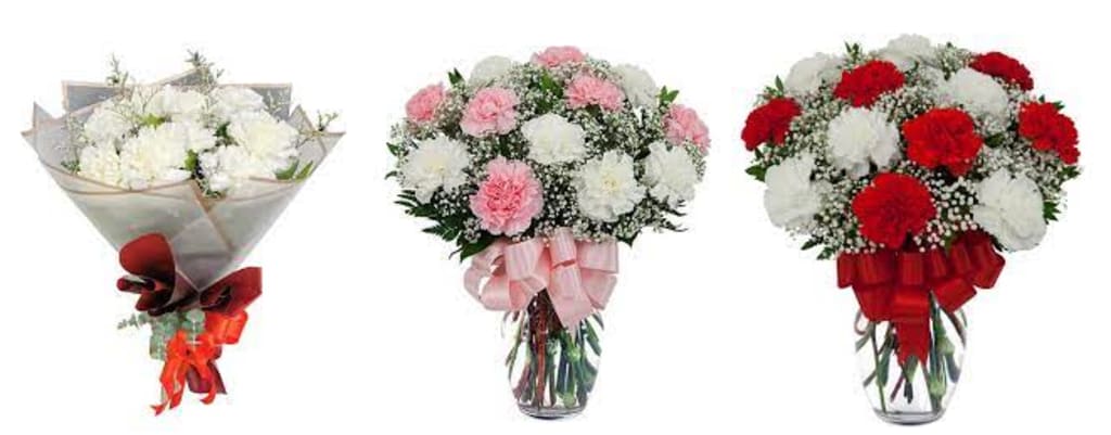 The white carnation symbolizes the purity of a mother’s love—but be careful with a bouquet of white carnations: Today, they symbolize death and a mother who has passed away. Choose red or pink carnations to honor a living mother, or mix your bouquet.